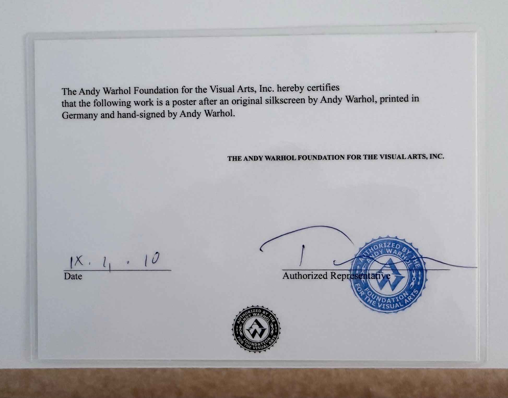 Certificato originale della Fondazione Andy Warhol incluso (autentica plastificata).