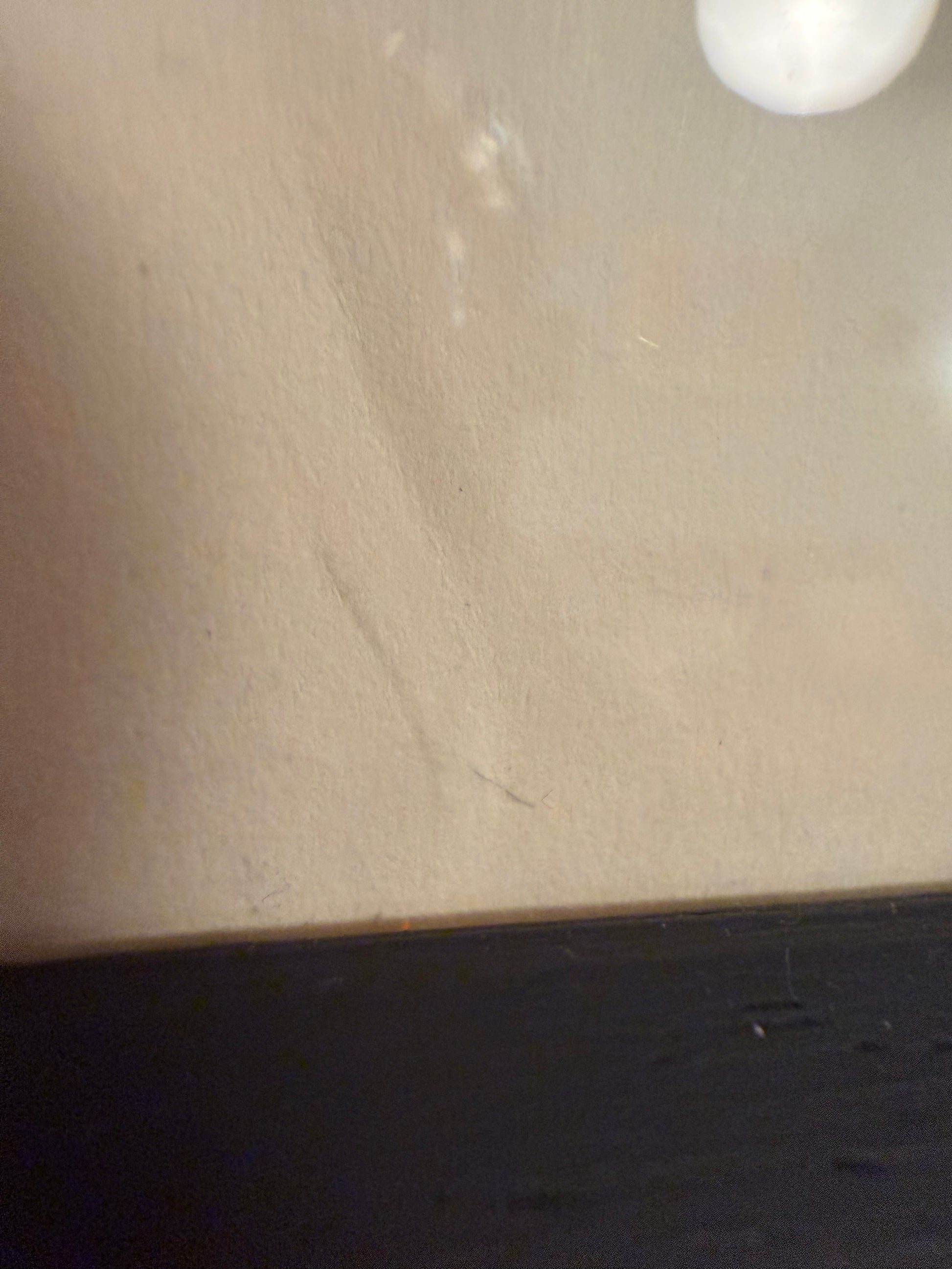 Opera con pieghe e segni visibili da vicino dovuti a danni da trasporto. Cornice in ottime condizioni.