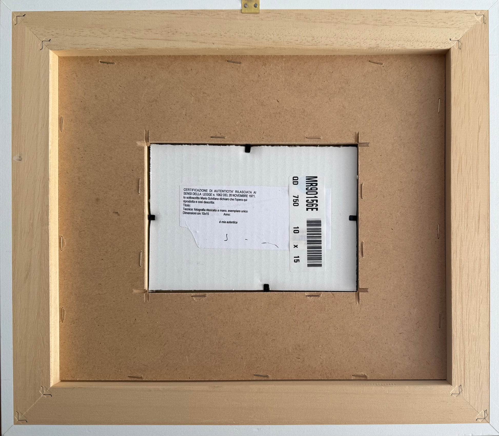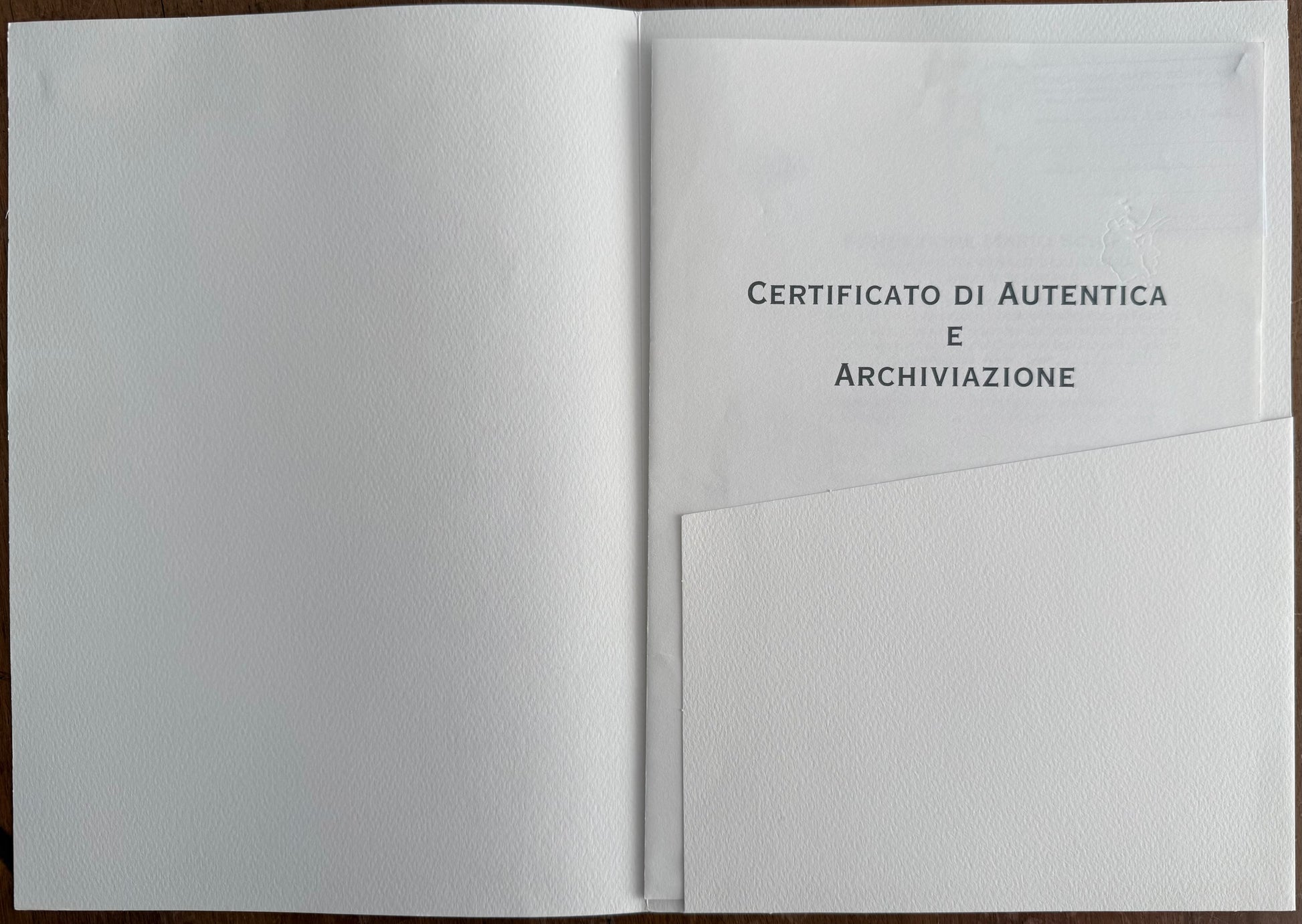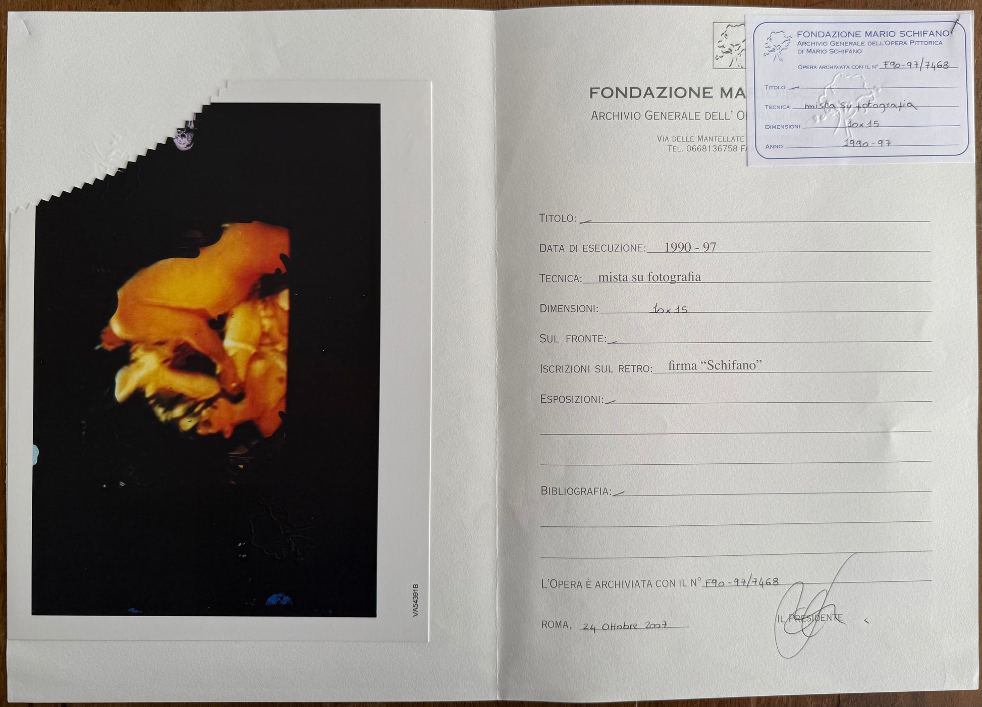 Certificato di archiviazione rilasciato dalla Fondazione Multistudio M.S., con firma autentica al verso del maestro.
