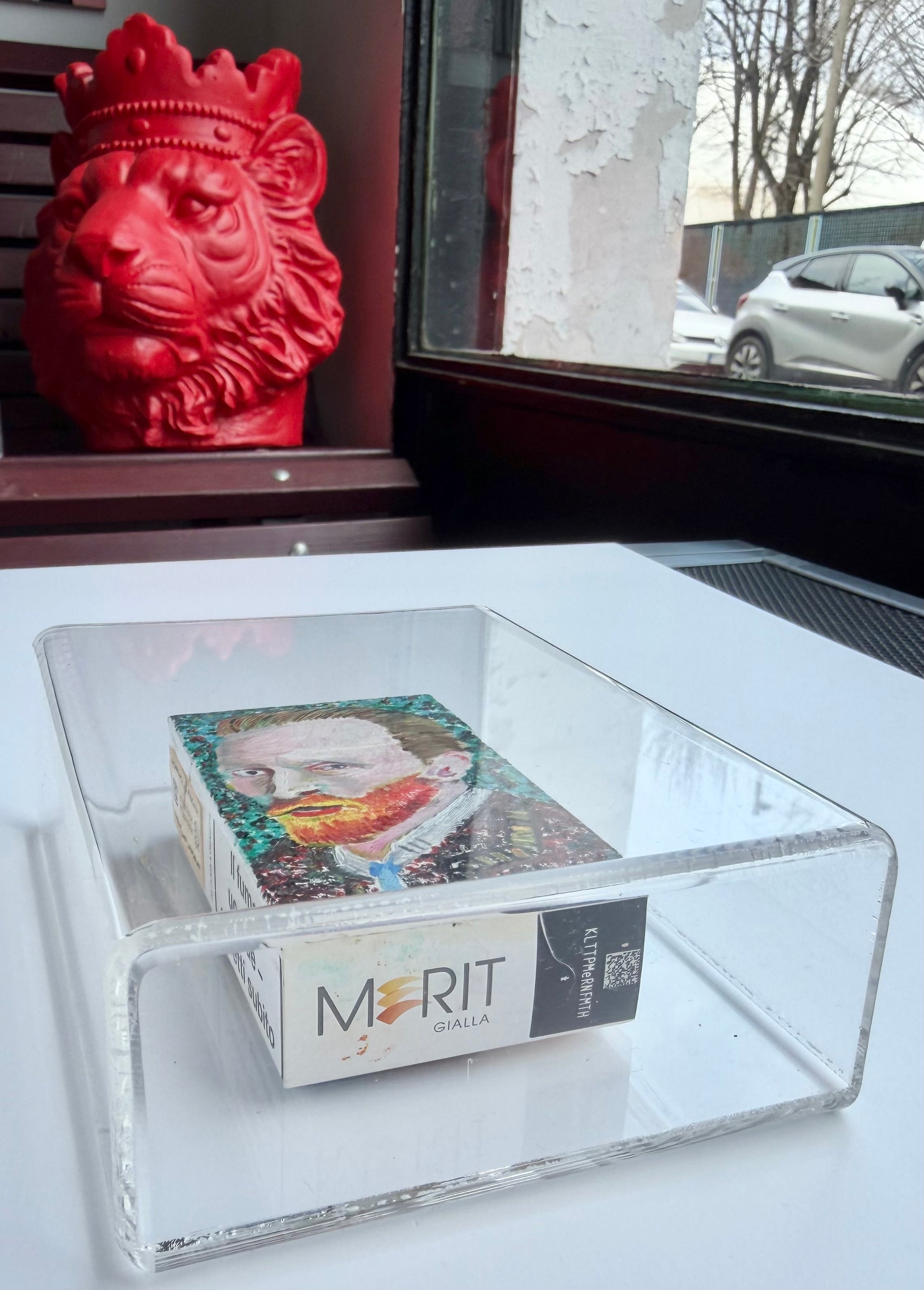 Opera d’arte: Un omaggio intimo e potente alla storia dell'arte. In "Remember Vincent", l'artista utilizza la sua distintiva tecnica pittorica per nobilitare un supporto non convenzionale come il pacchetto di sigarette, trasformandolo in una micro-tela carica di tensione emotiva. Un'opera unica che unisce il fascino della pittura classica alla provocazione della materia contemporanea.