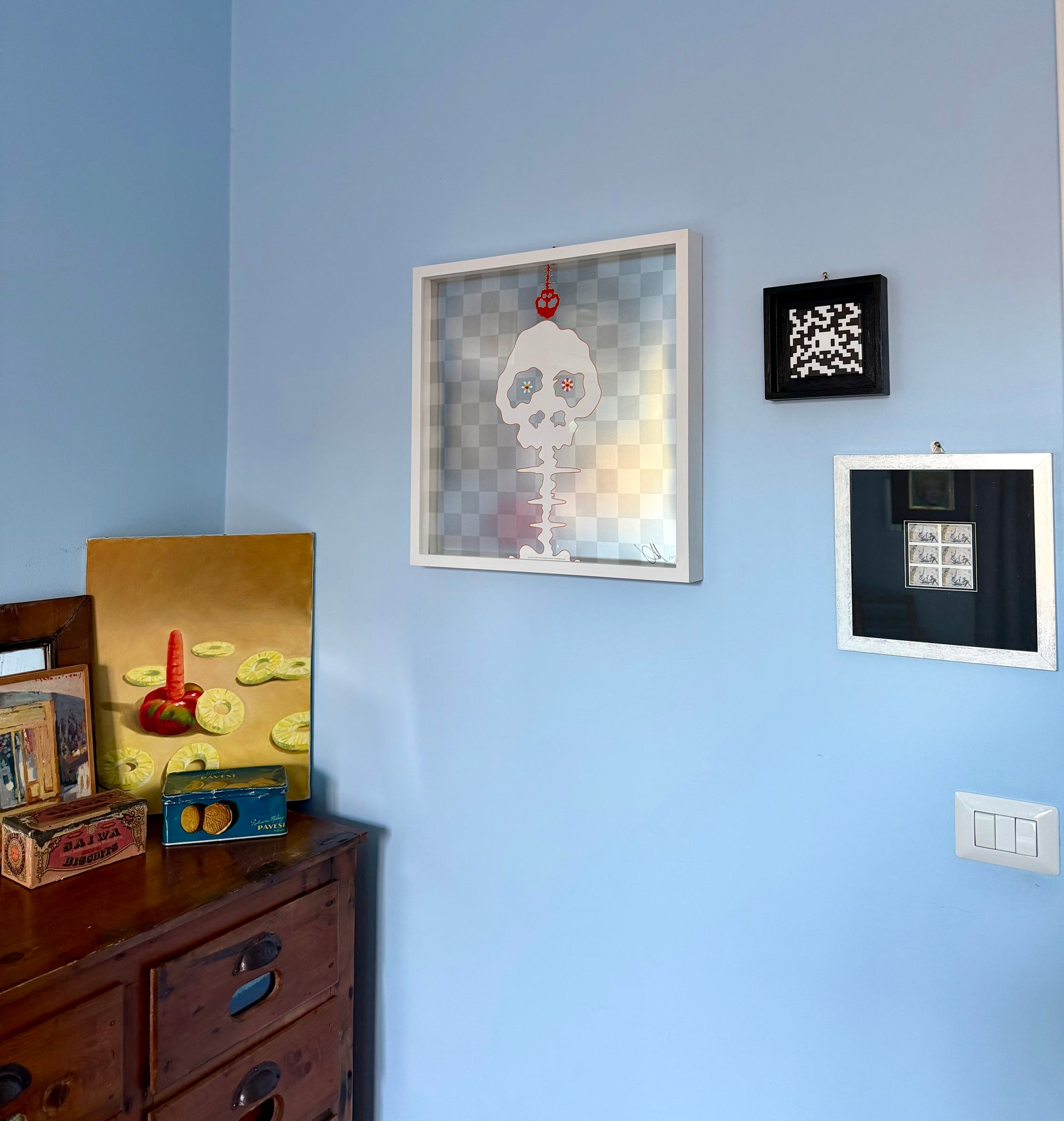 Cornice artigianale realizzata e dipinta a mano, con vetro museale anti-UV e antiriflesso.