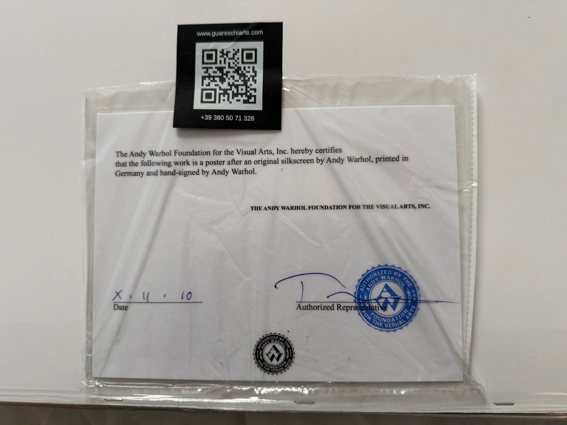 Accompagnata da Certificato di Autenticità ufficiale rilasciato dalla Fondazione Andy Warhol, che ne garantisce l’origine e la piena autenticità.