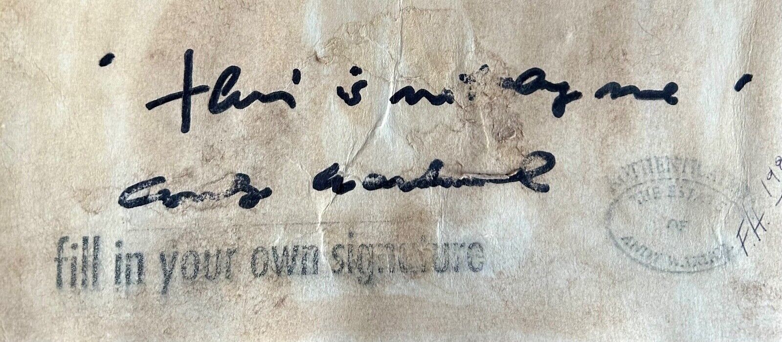 Firmata a mano da Andy Warhol, penna a feltro. Certificata dall’Estate di Andy Warhol (1988). COA incluso, rilasciato da perito giudiziario