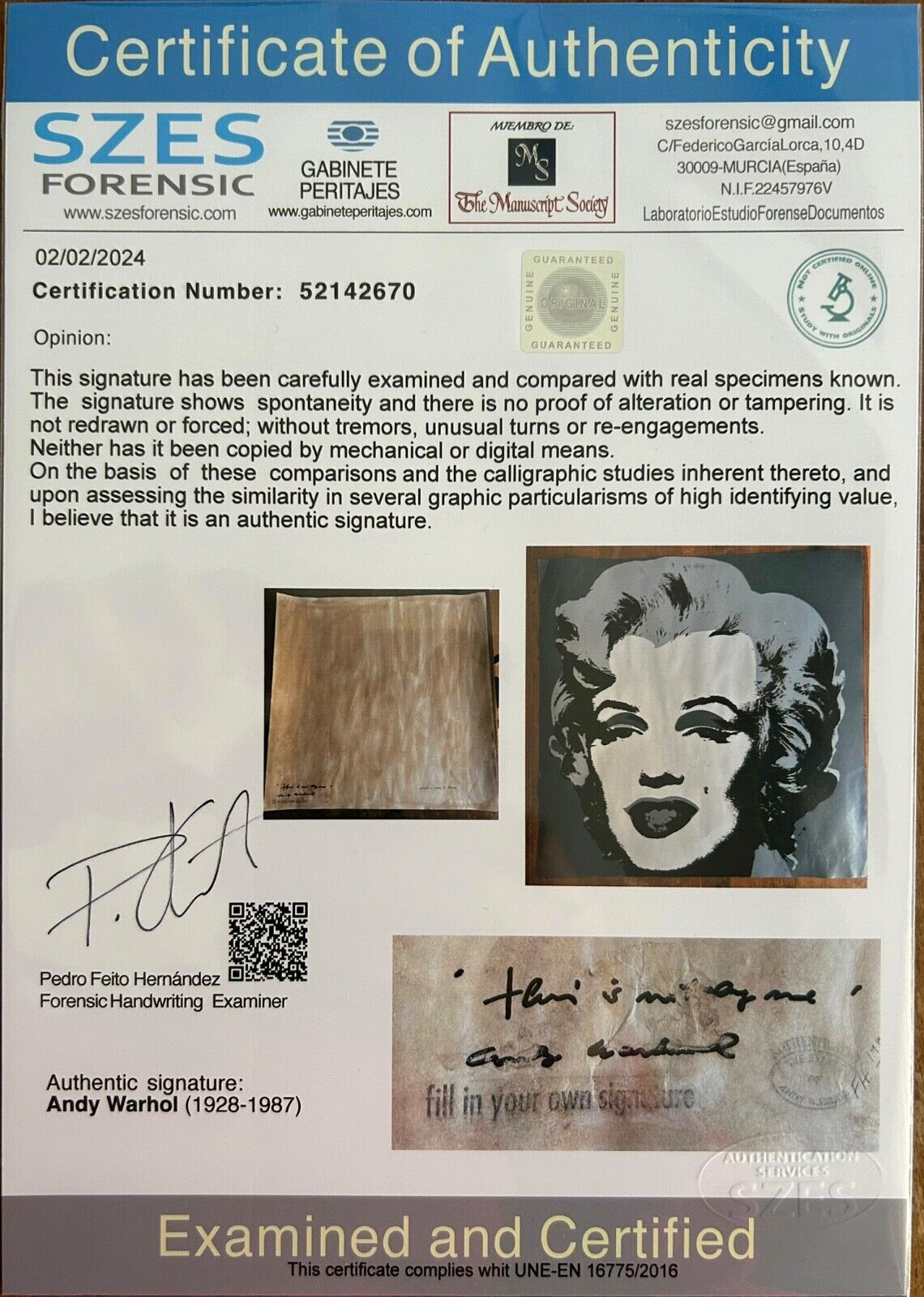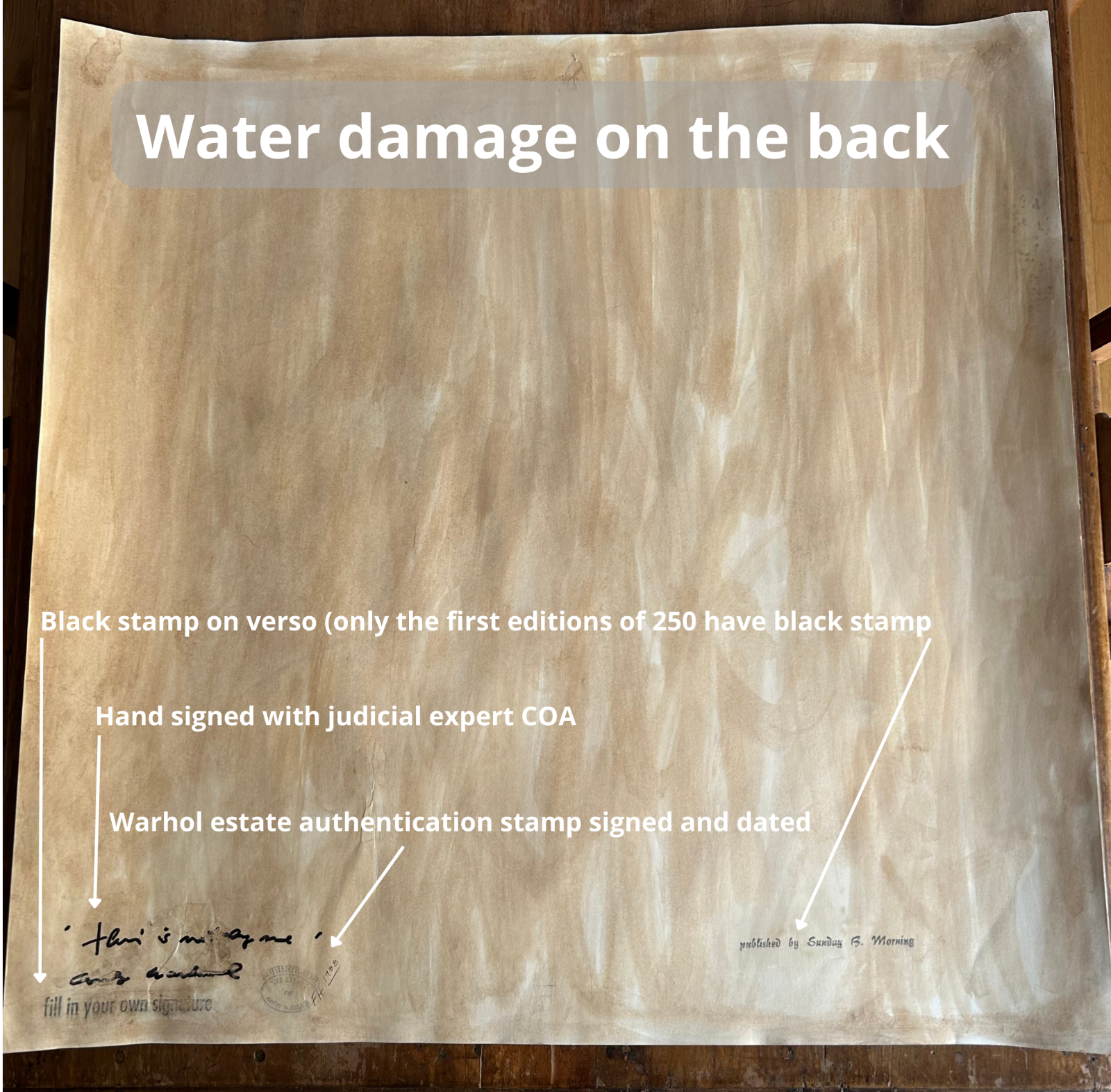 È stata autenticata dall’Estate di Andy Warhol nel 1988 ed è accompagnata da un certificato di autenticità firmato da un perito giudiziario.